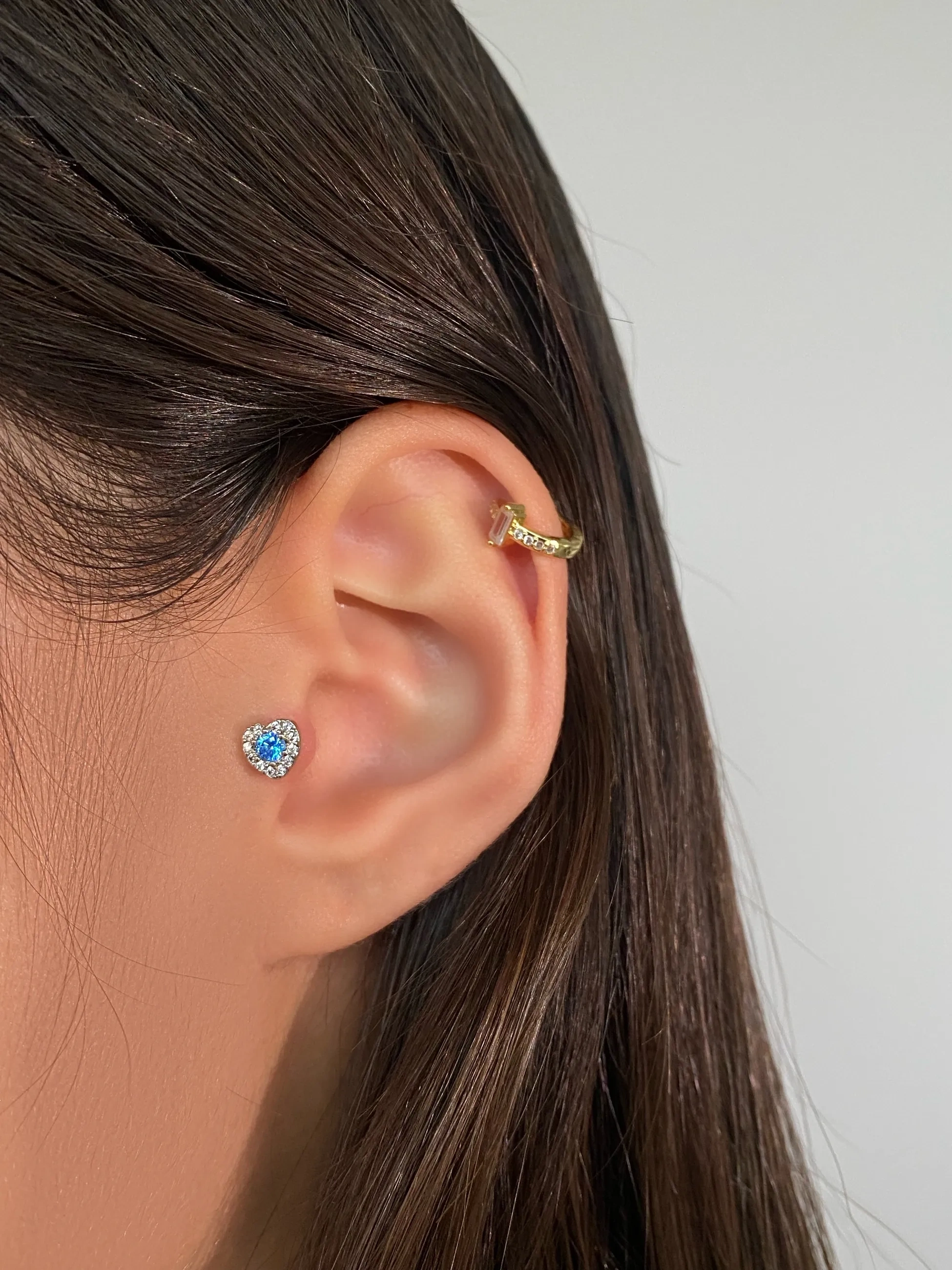 Cerrahi Çelik Silver Mavi Kalp Tragus Piercing