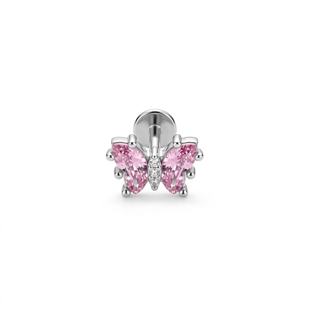 Cerrahi Çelik Silver Pembe Kelebekli Piercing