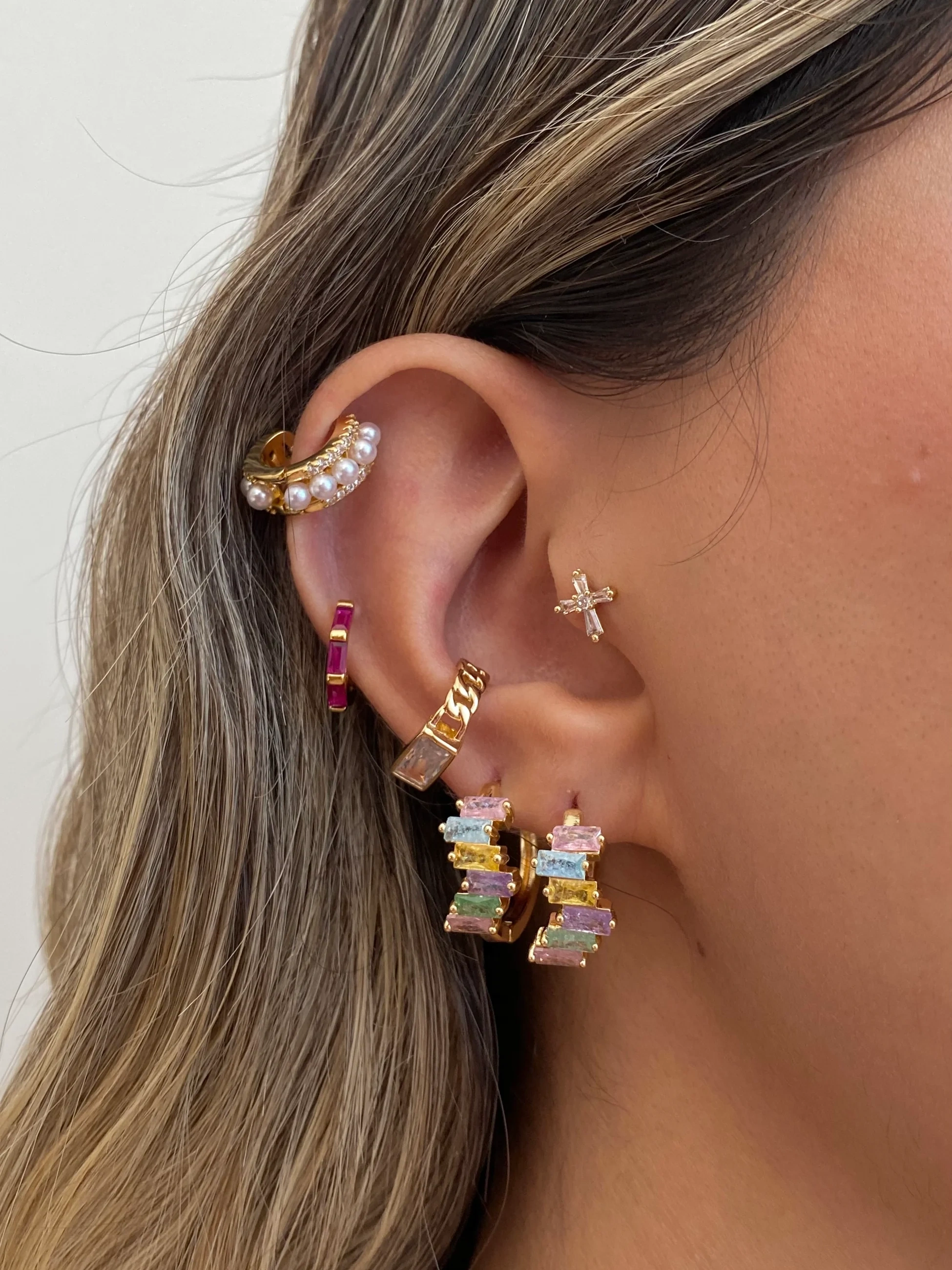 Gold Baget Taşlı Halka Küpe