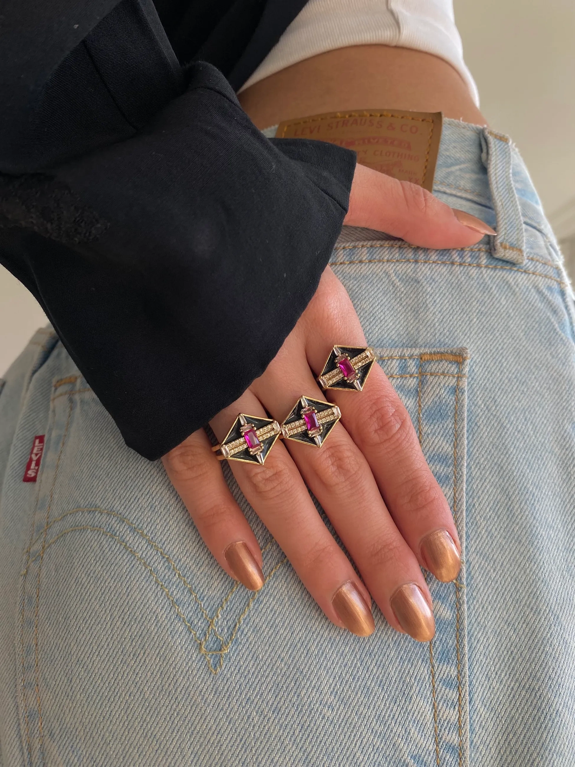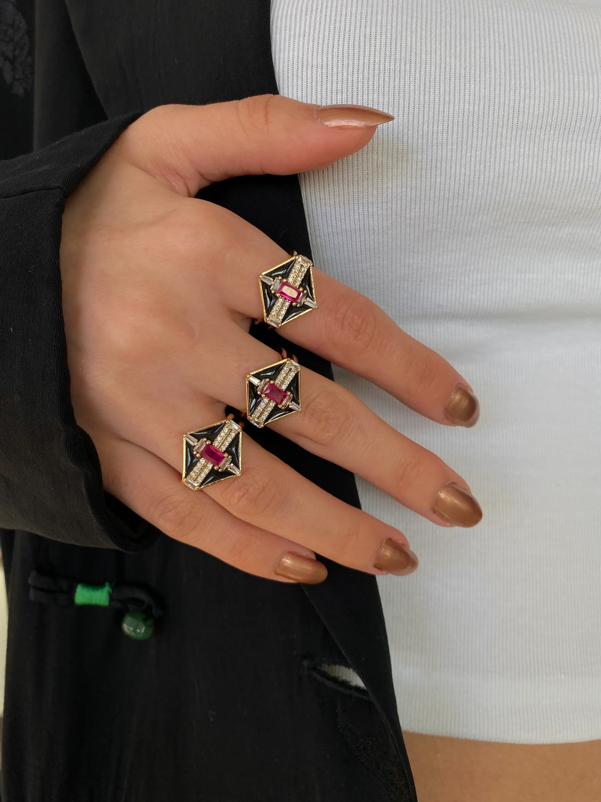 Çelik Siyah Mineli Yüzük