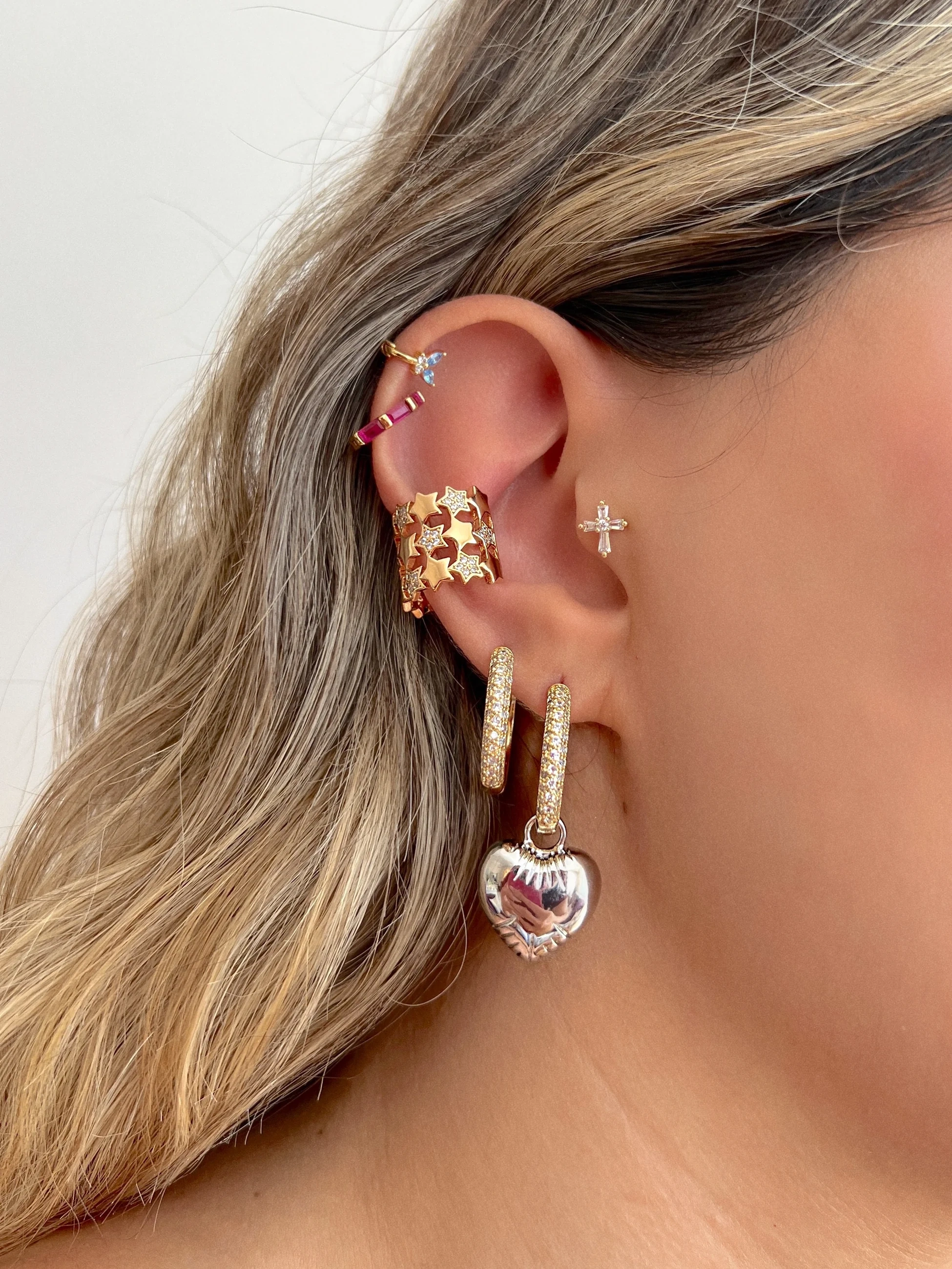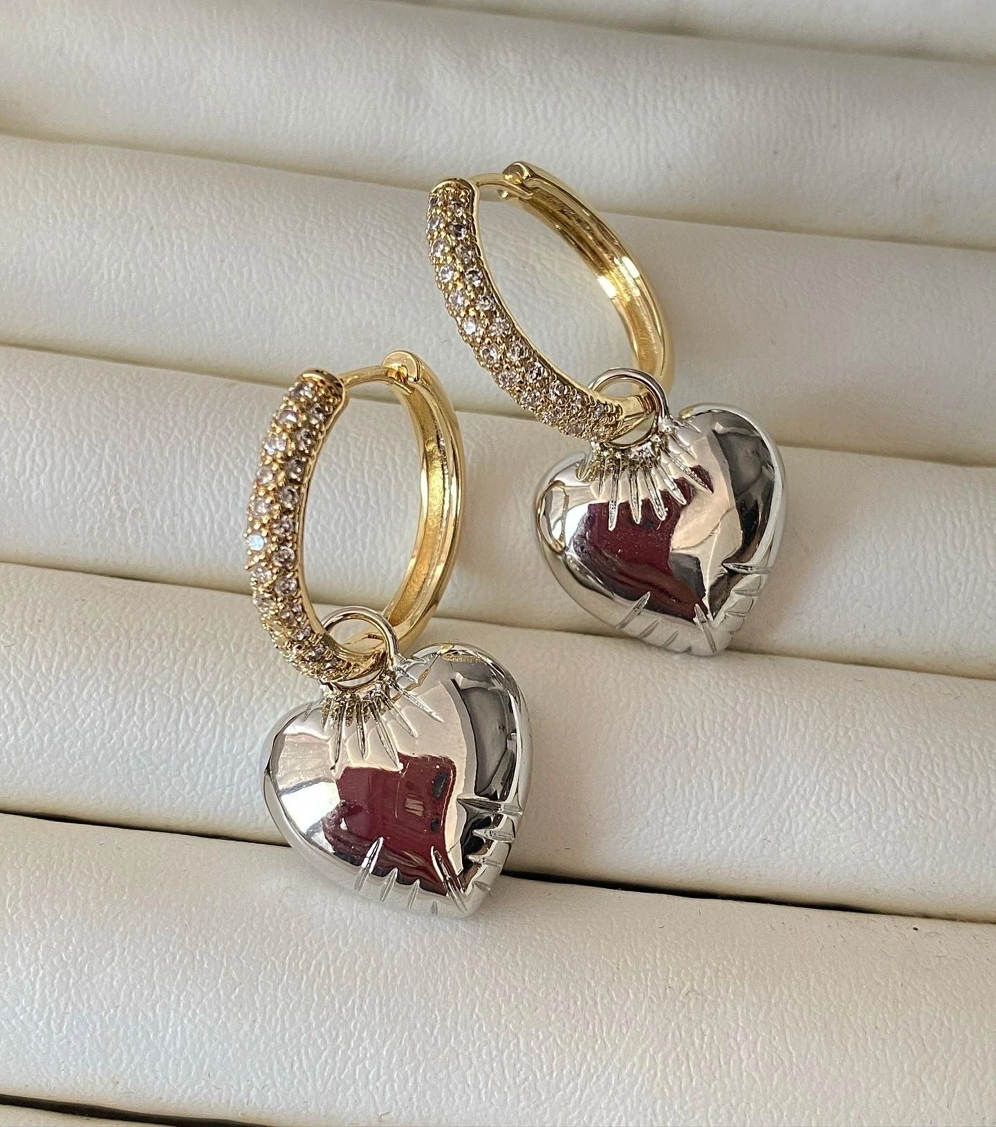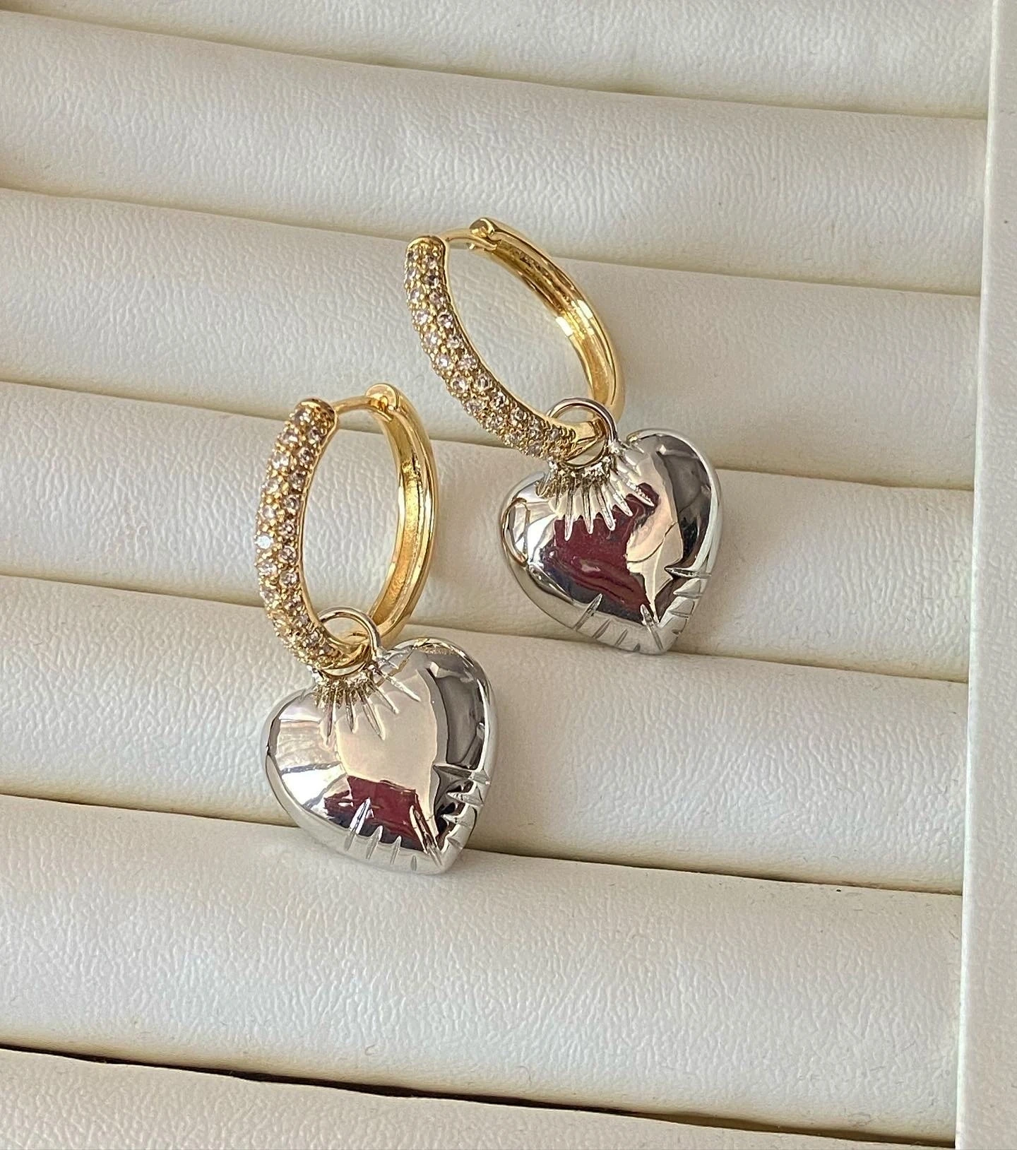 İthal Çift Renk Kalp Küpe