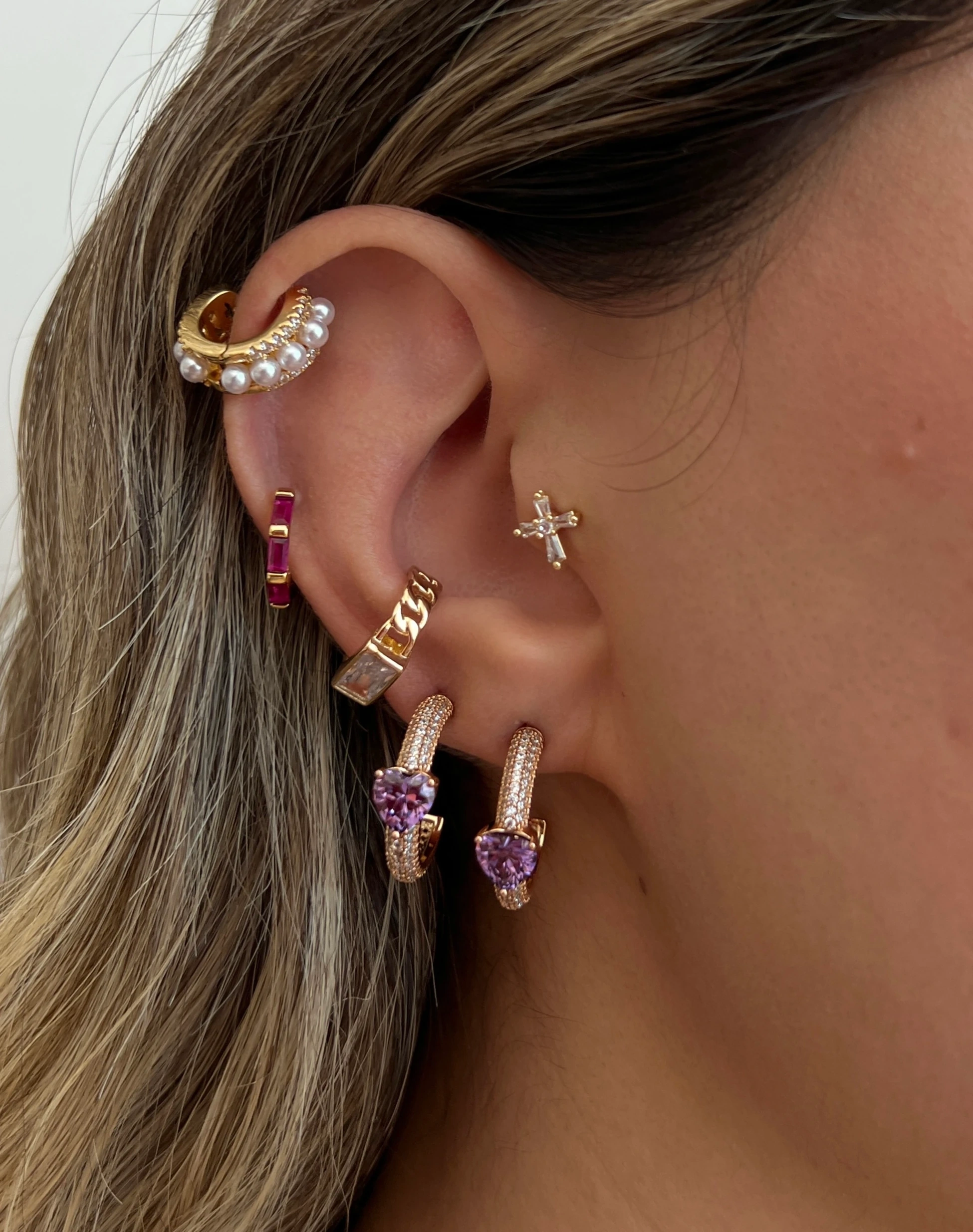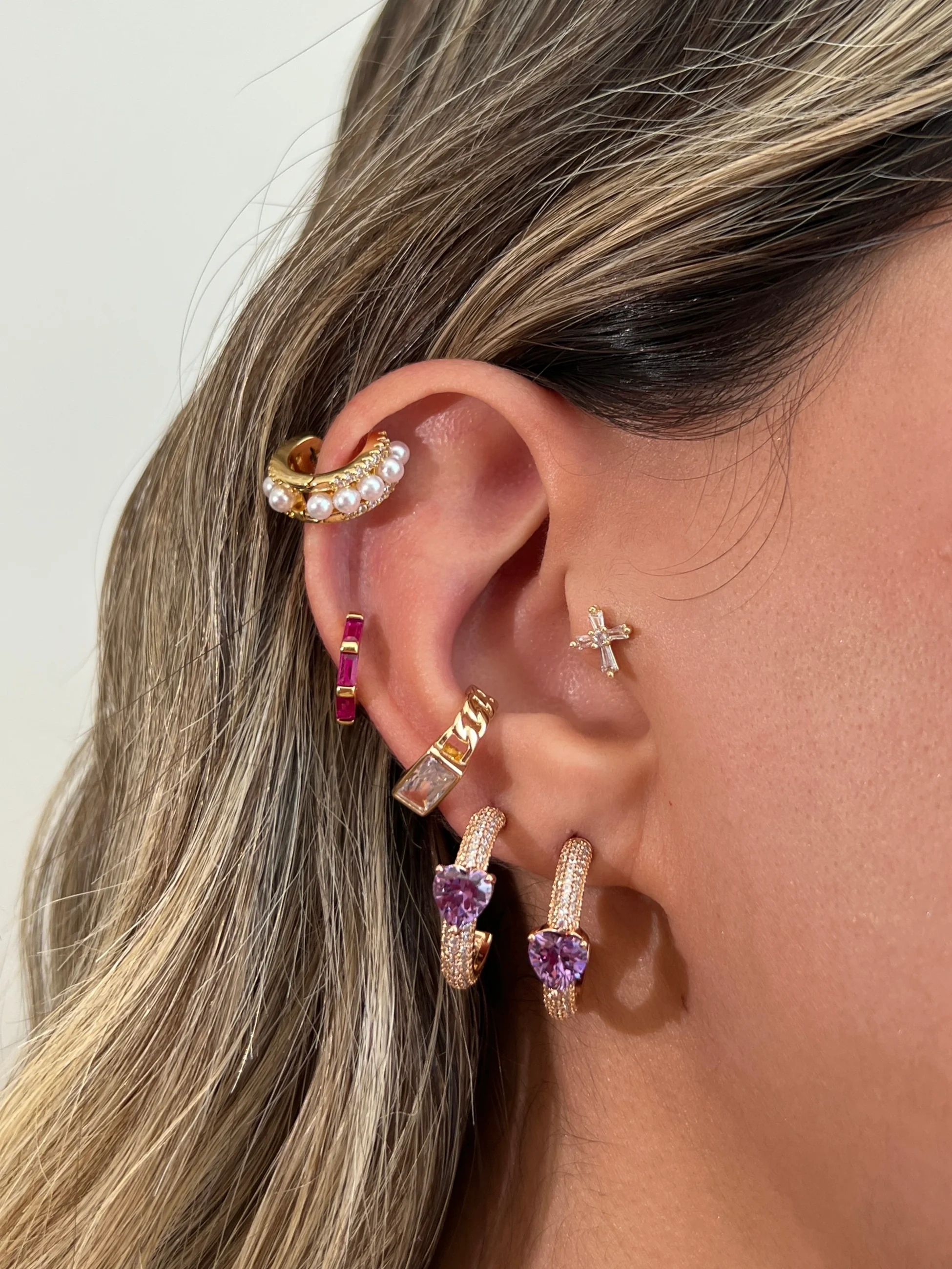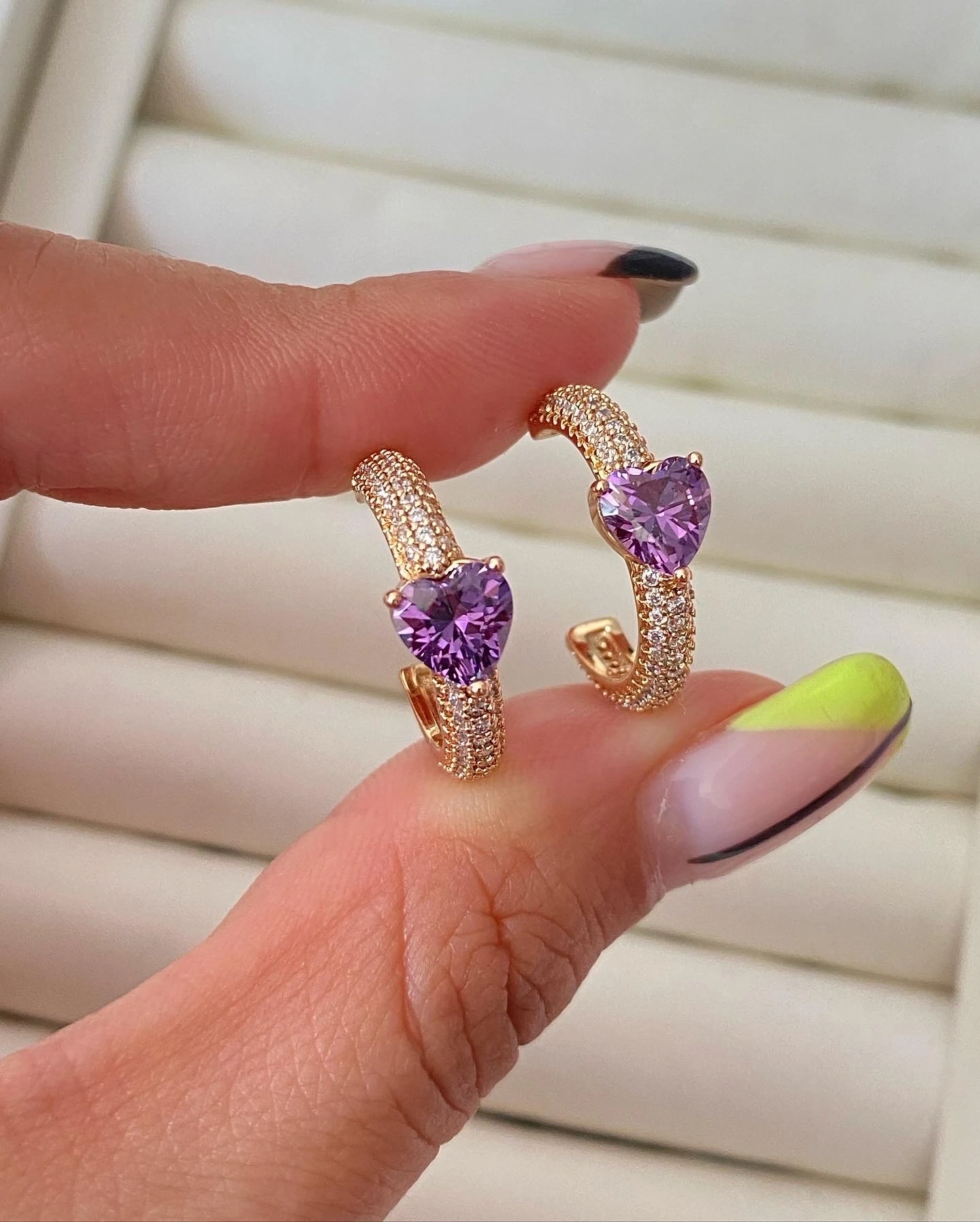 İthal Mor Kalpli Halka Küpe