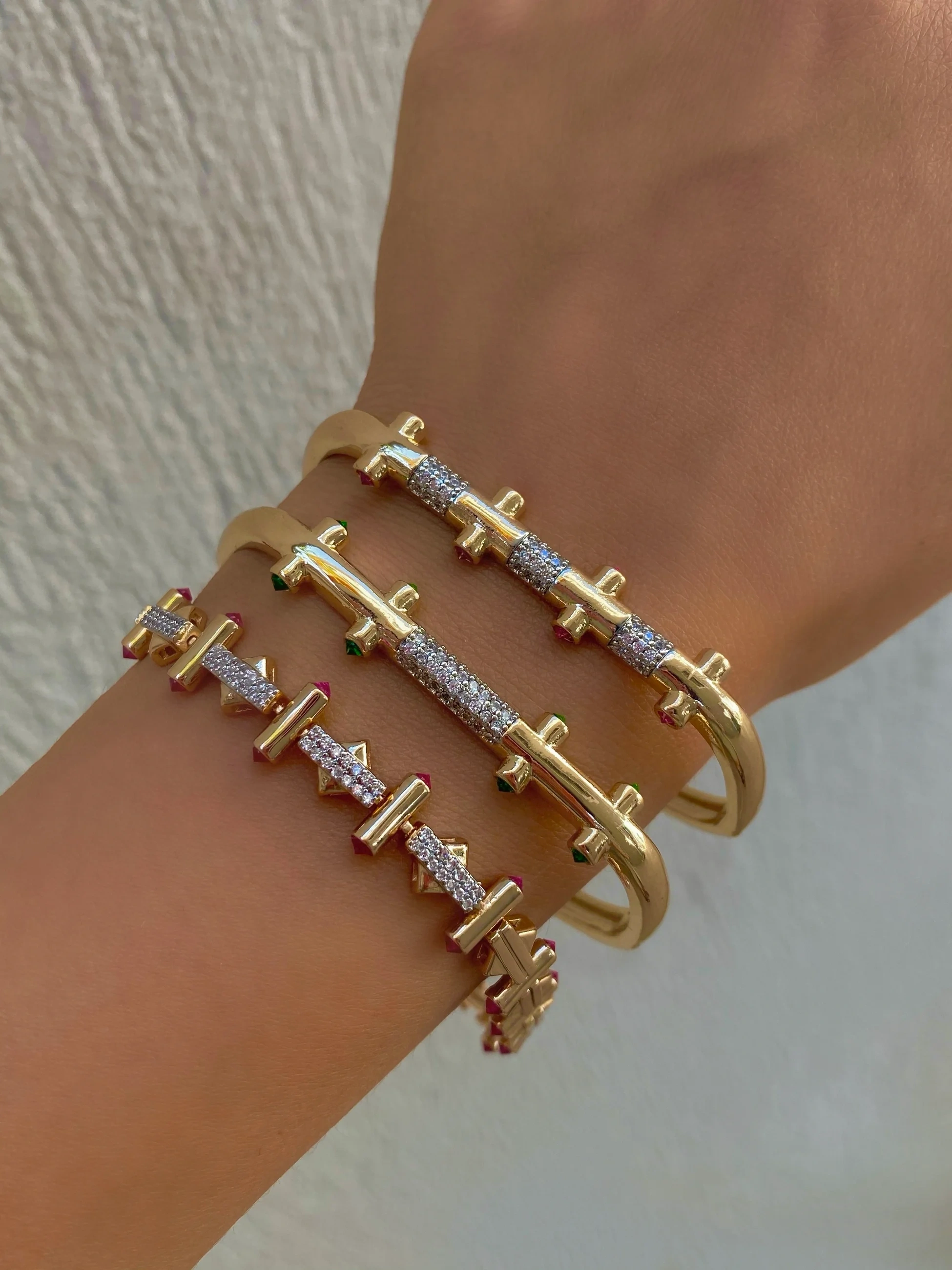 Kırmızı Taşlı Kelepçe Bileklik