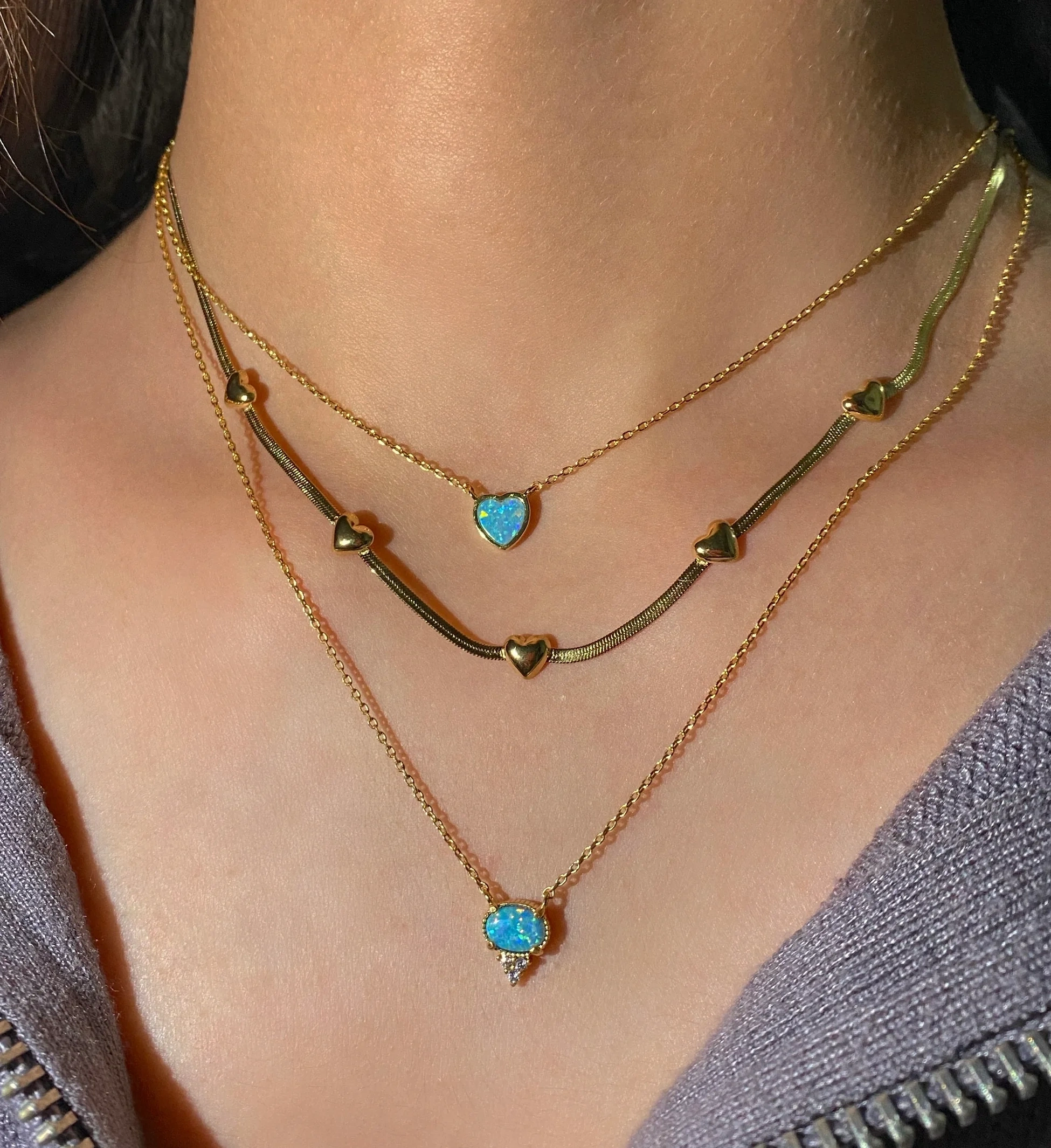 Çelik Minimal Opal Taşlı Kolyeler