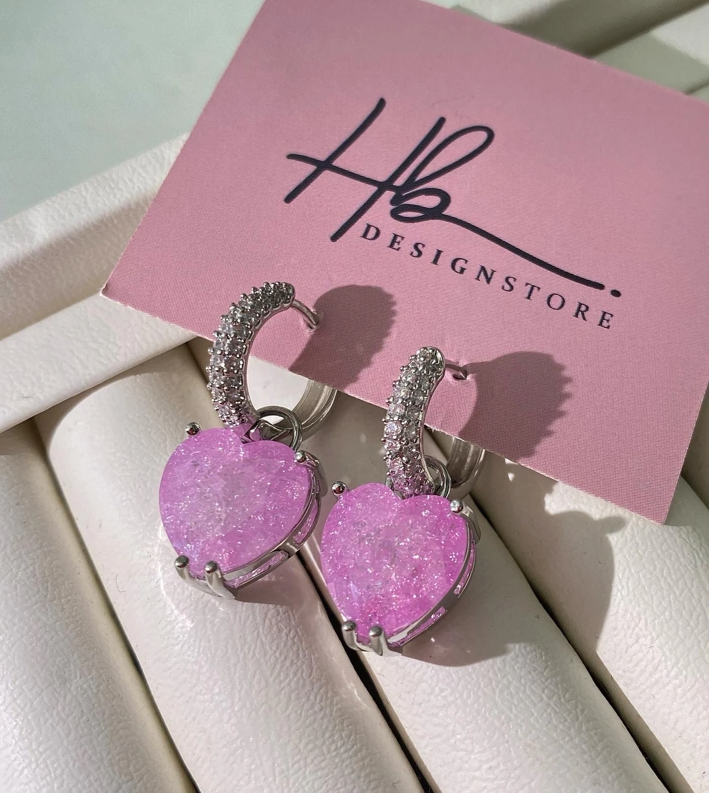 İthal Pembe Kuvars Taşlı Kalp Küpe