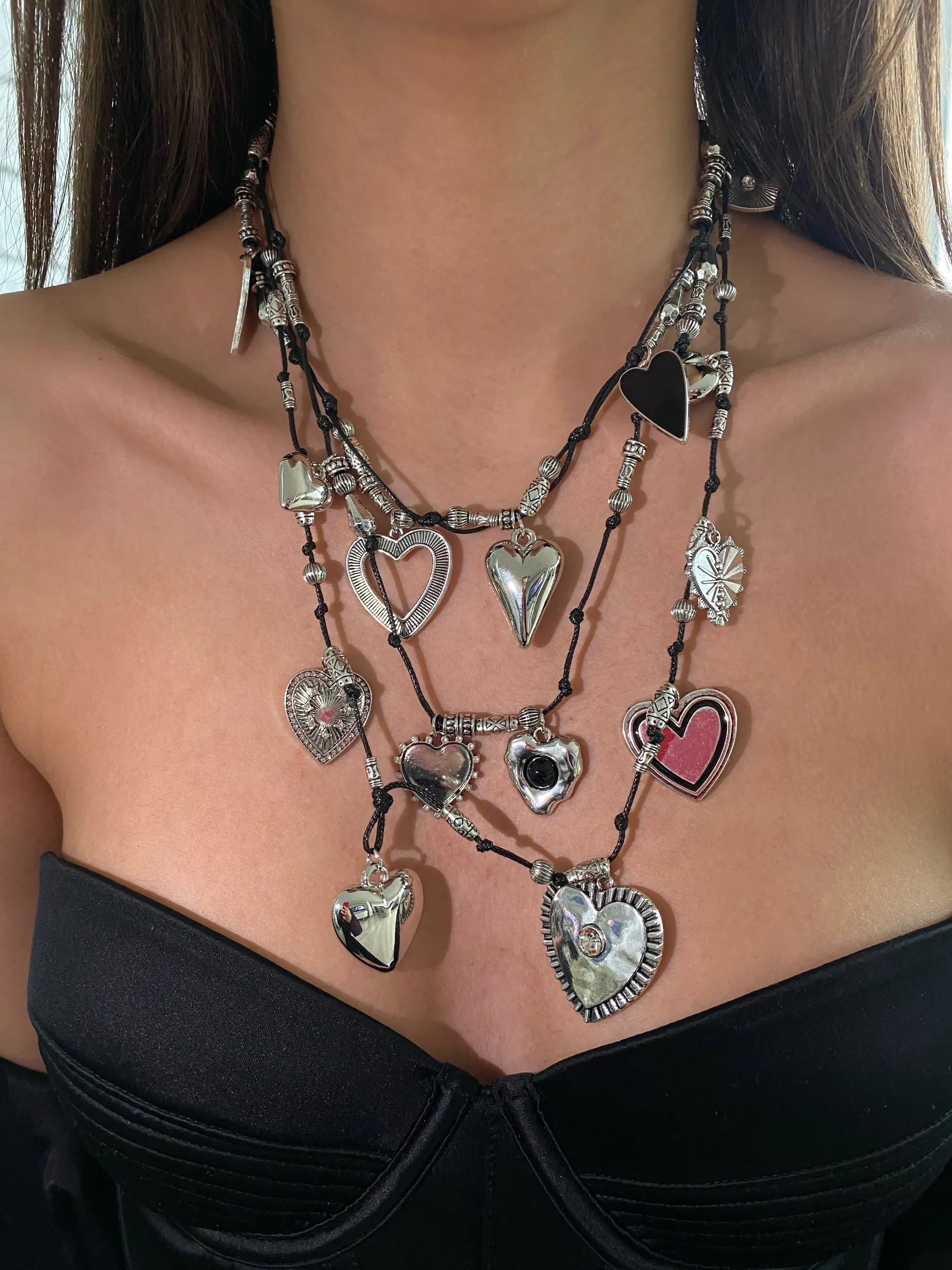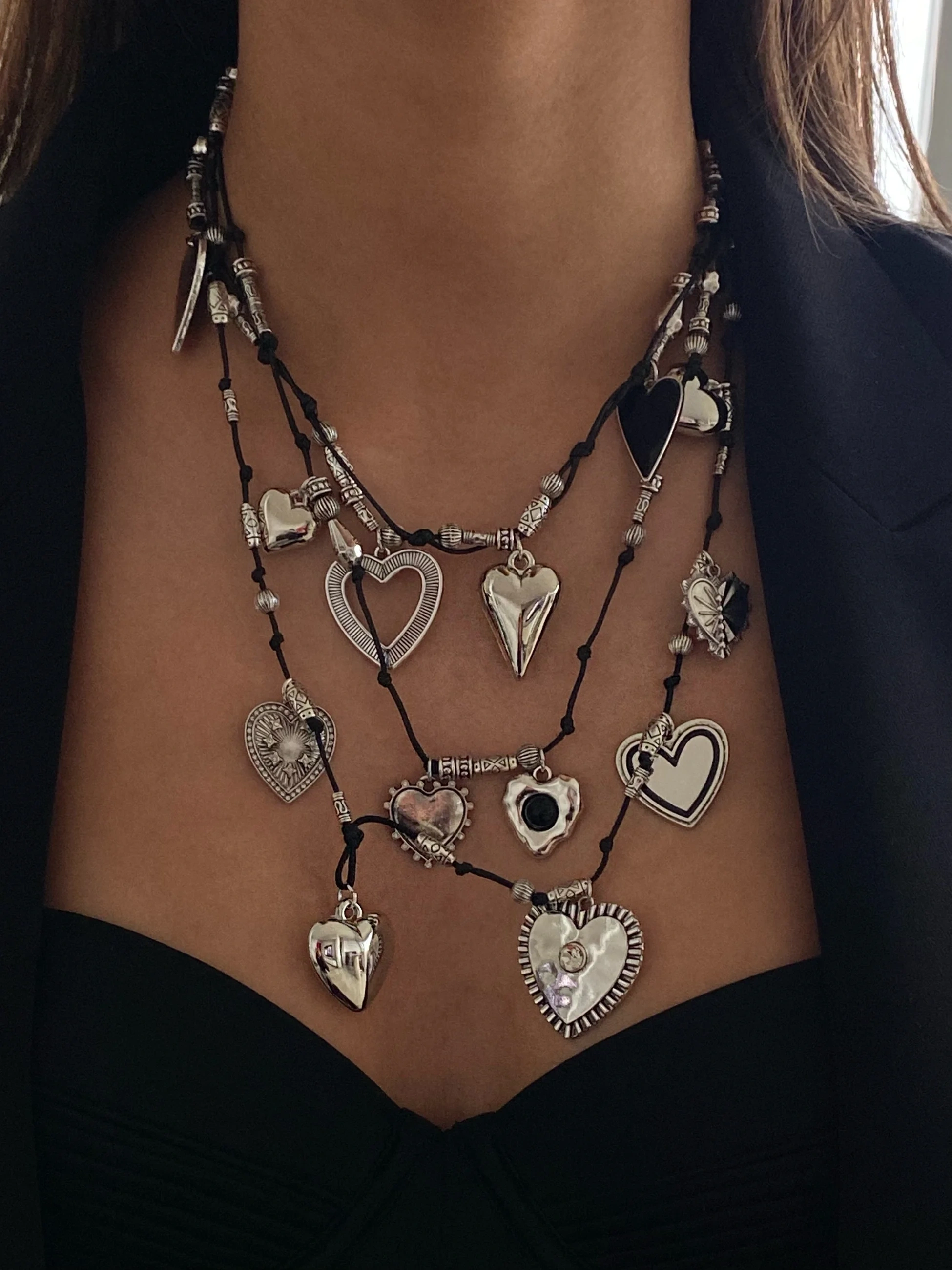 Silver 3 Katlı Kalpli Tasarım Kolye