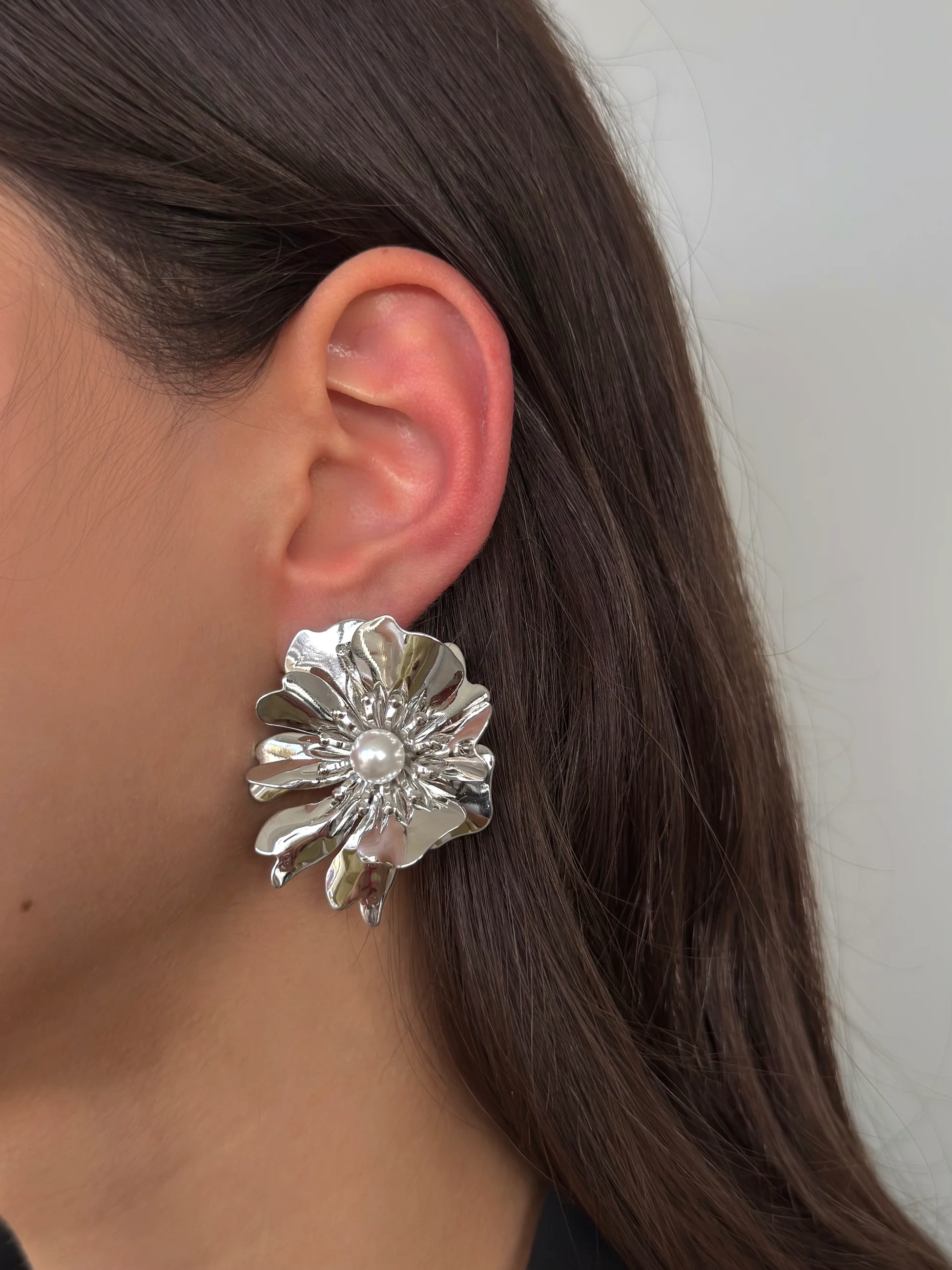 Silver Çiçek Küpe