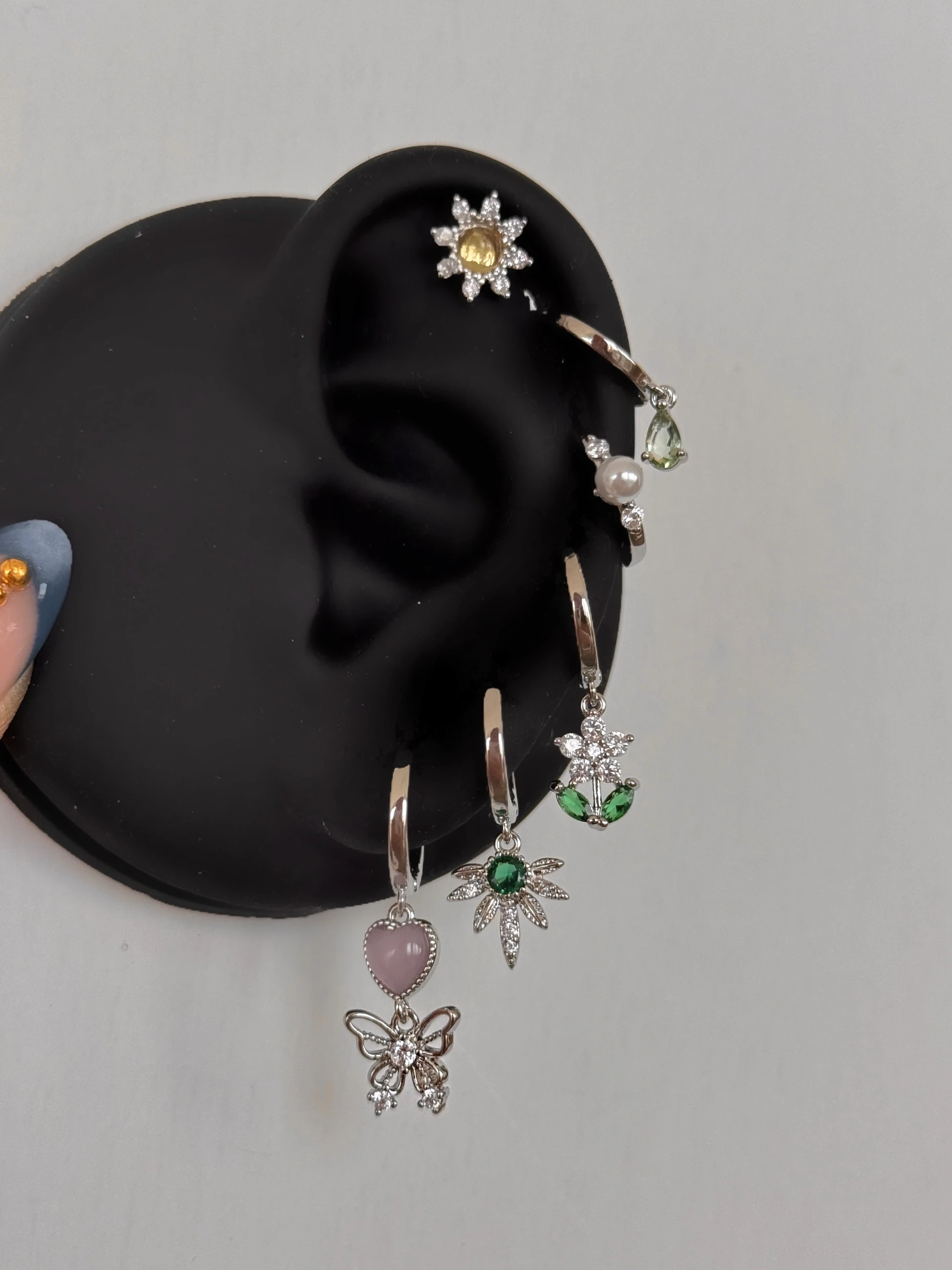 Çelik Silver Çiçekli 6 Lı Küpe Seti