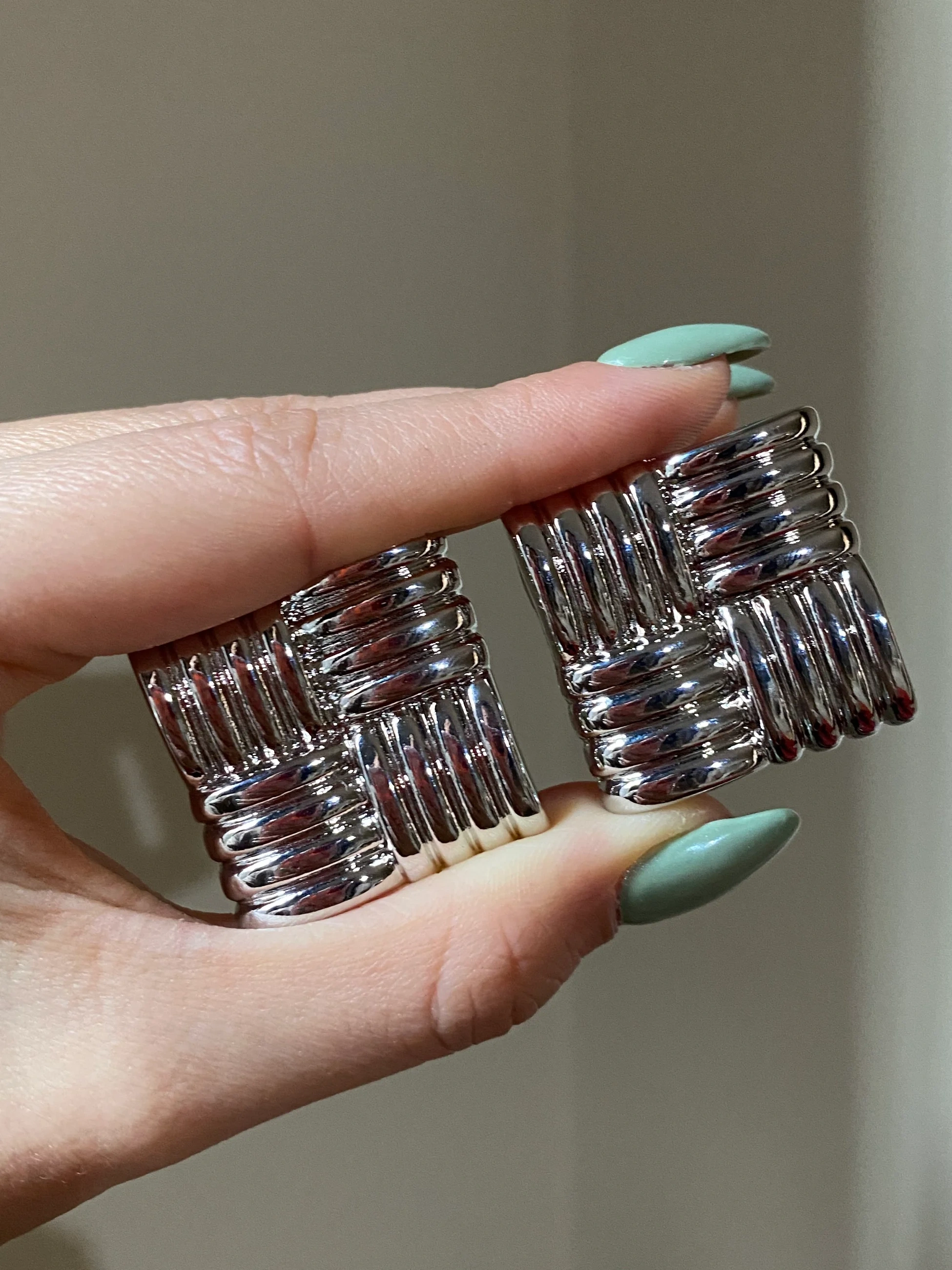 Çelik Silver Kare Küpe