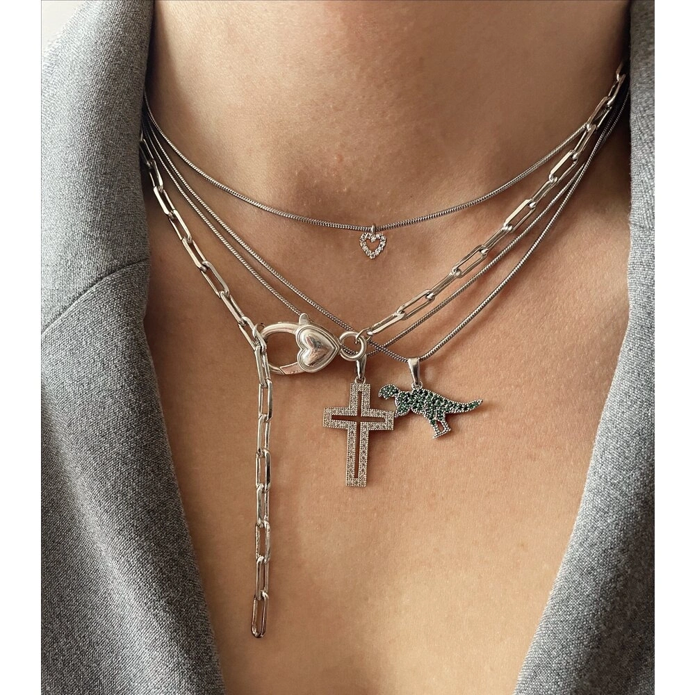Silver Kalp Klipsli Y Kolye
