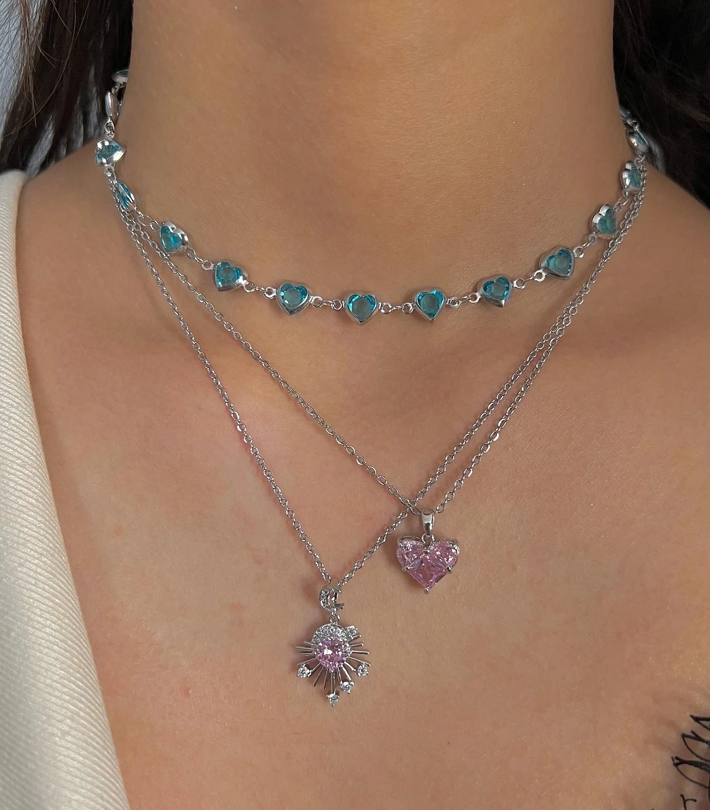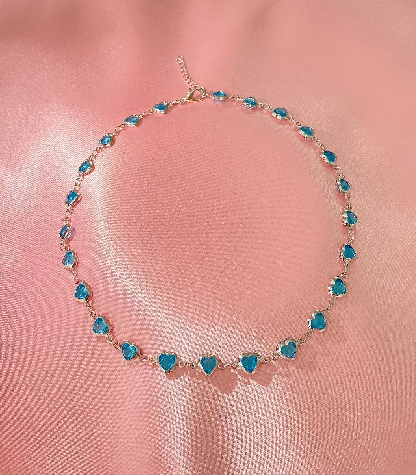 Silver Mavi Mini Kalp Choker