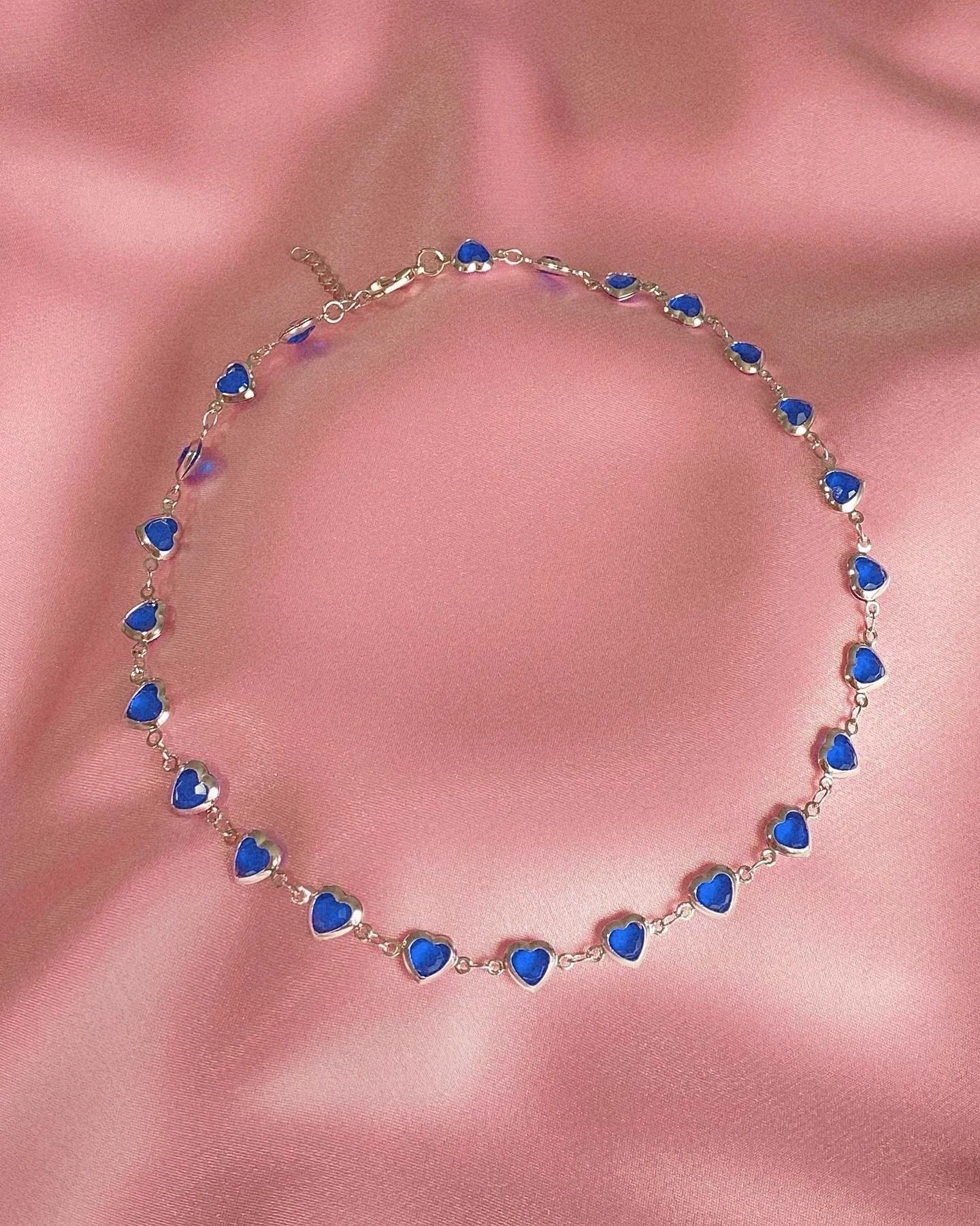 Silver Lacivert Mini Kalp Choker