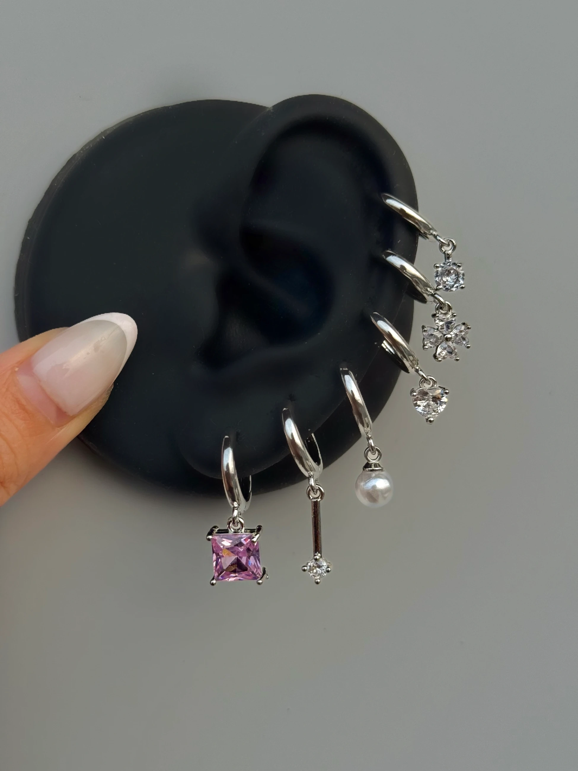 Silver Pembe Taşlı 6 Lı Küpe Seti