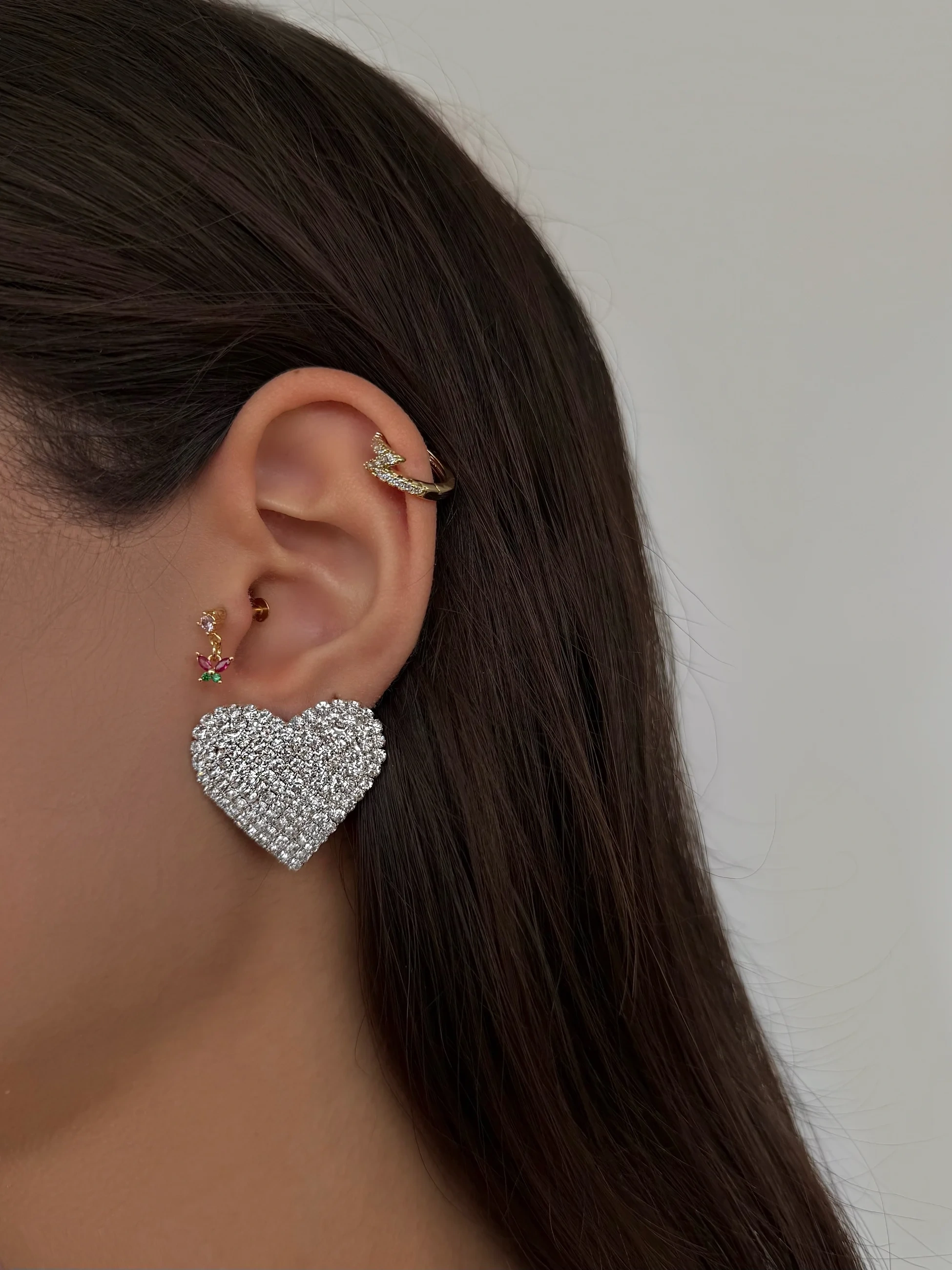 Taşlı Kalp Küpe