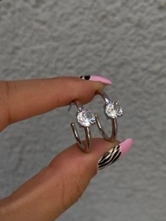 Tek Taş Detaylı Silver Halka Küpe