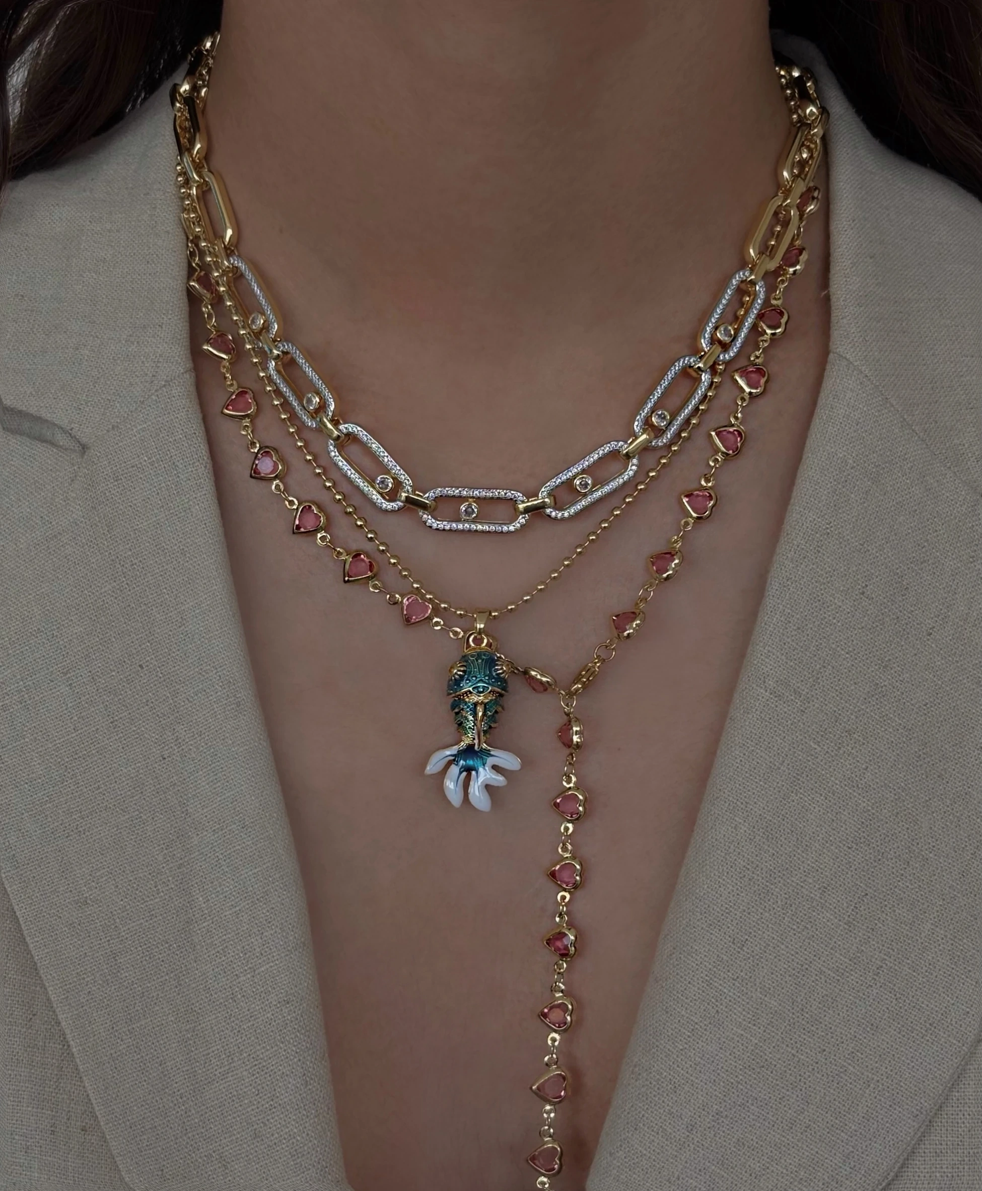 316L çelik üzeri 18K altın kaplamadır.