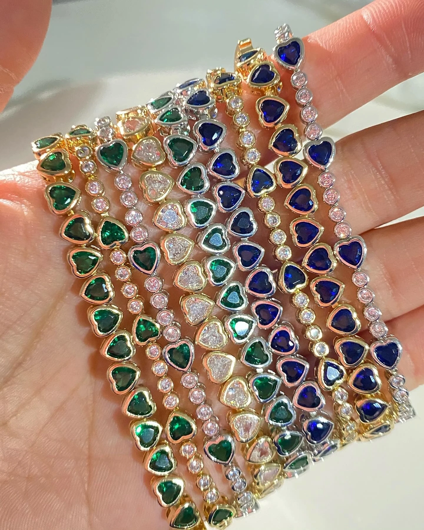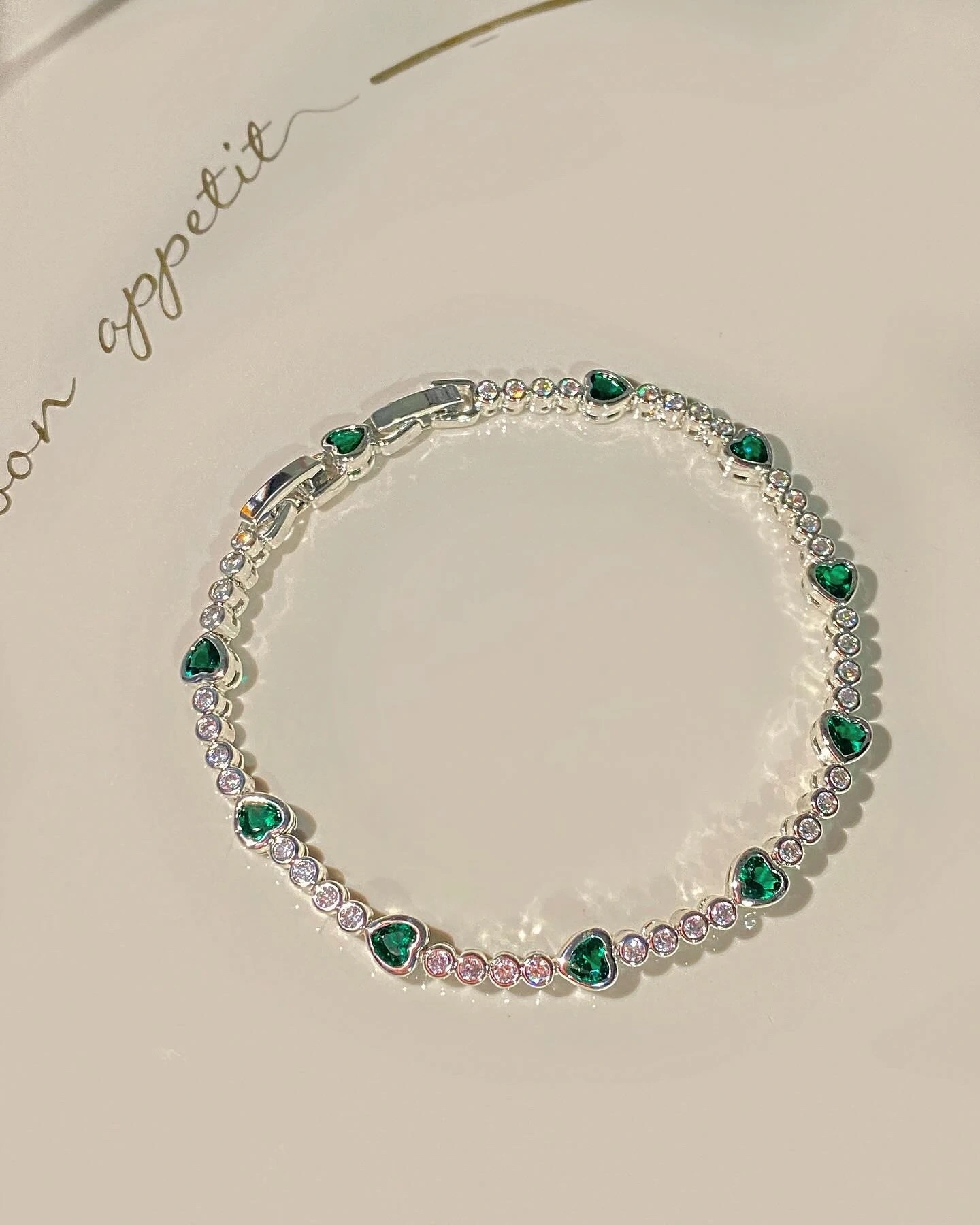 Vip Silver Yeşil Minimal Kalpli Bileklik